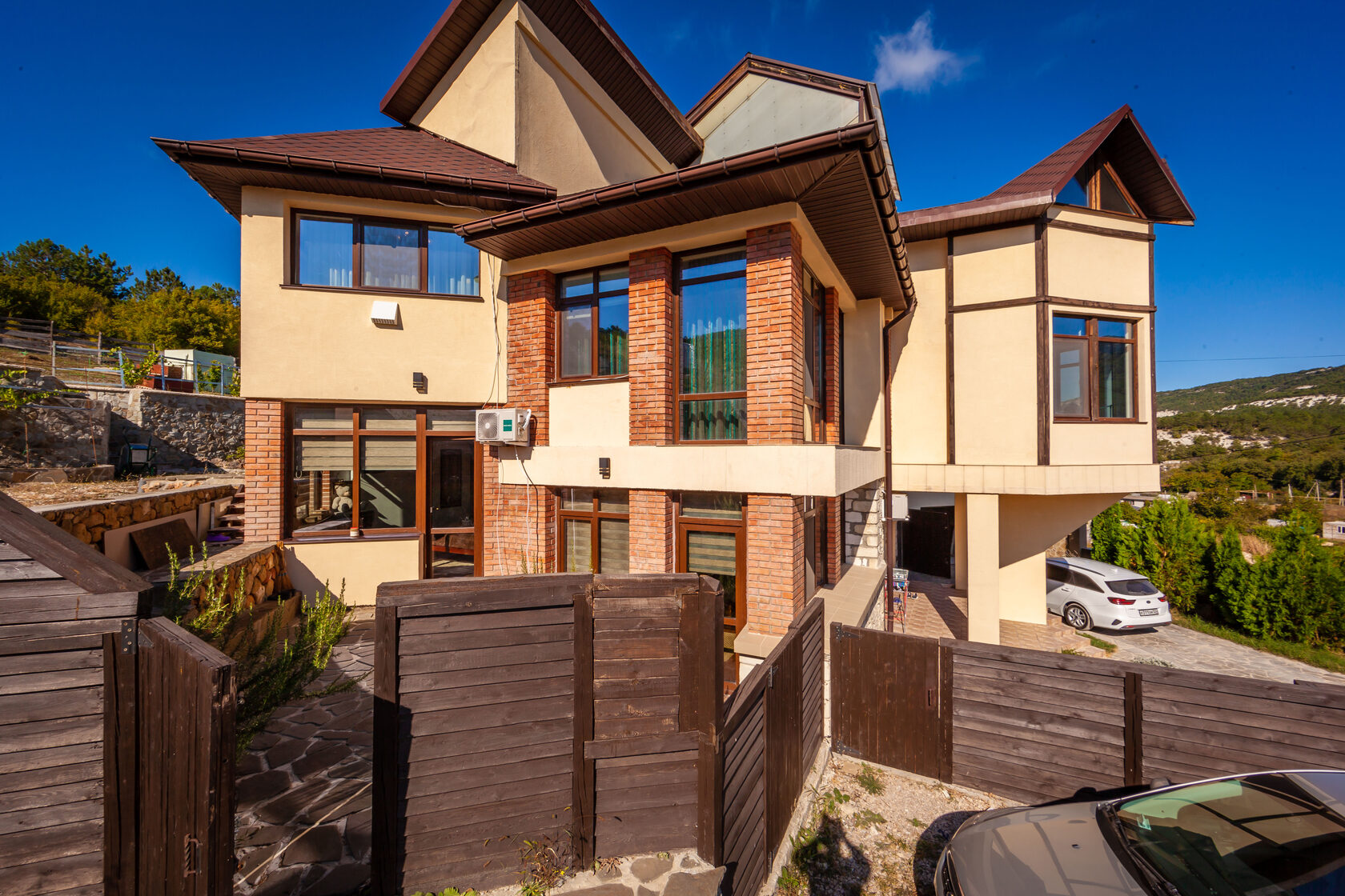 Участок 25 соток Богатый плодоносящий сад Разноуровневый ландшафт На первом уровне находится капитальный дом площадью 350 м2 Уютный двор для большой компании, зона барбекю и винный погреб Второй уровень, примыкающий к лесу, идеально подойдет под собственные виноградники. Или размещения нескольких гостевых домов. В дом заведено электричество 15Квт и центральное водоснабжение.